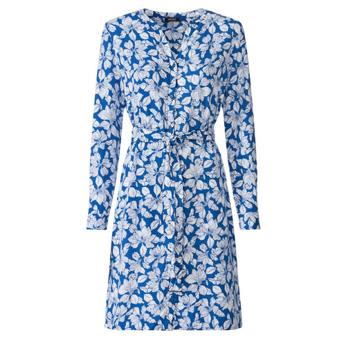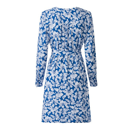 این پیراهن جنس بسیار سبک و خنکی دارد. ازبالا تا پایین لباس دکمه دارد و آستین مچدار است. در قسمت دارای کمربند بوده و میتوانیم اندازه کمر را تنظیم کنیم.