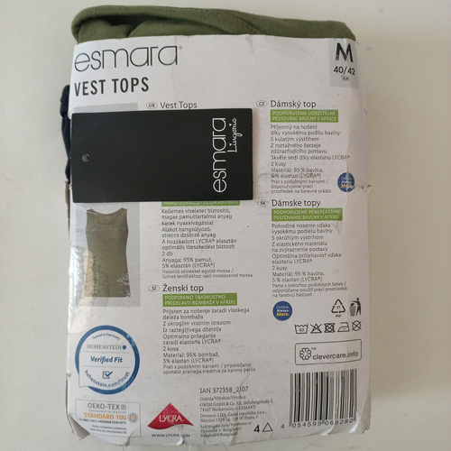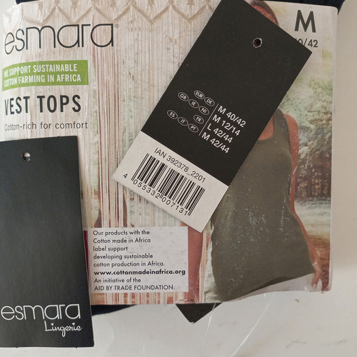 برند esmara از مجموعه تولیدات شرکت Lidlآلمان می باشد که به صورت تخصصی پوشاک زنانه تولید مینماید.جنس بسیاری از لباس های تولیدی این برند از 100 درصد پنبه است که توانسته گواهی OEKO_TEX را که از جمله معتبرترین گواهینامه های کیفی اروپا می باشد را تصاحب کند و چون بر چسب کیفیت دارد هیچگونه حساسیتی ایجاد نمی کند.
